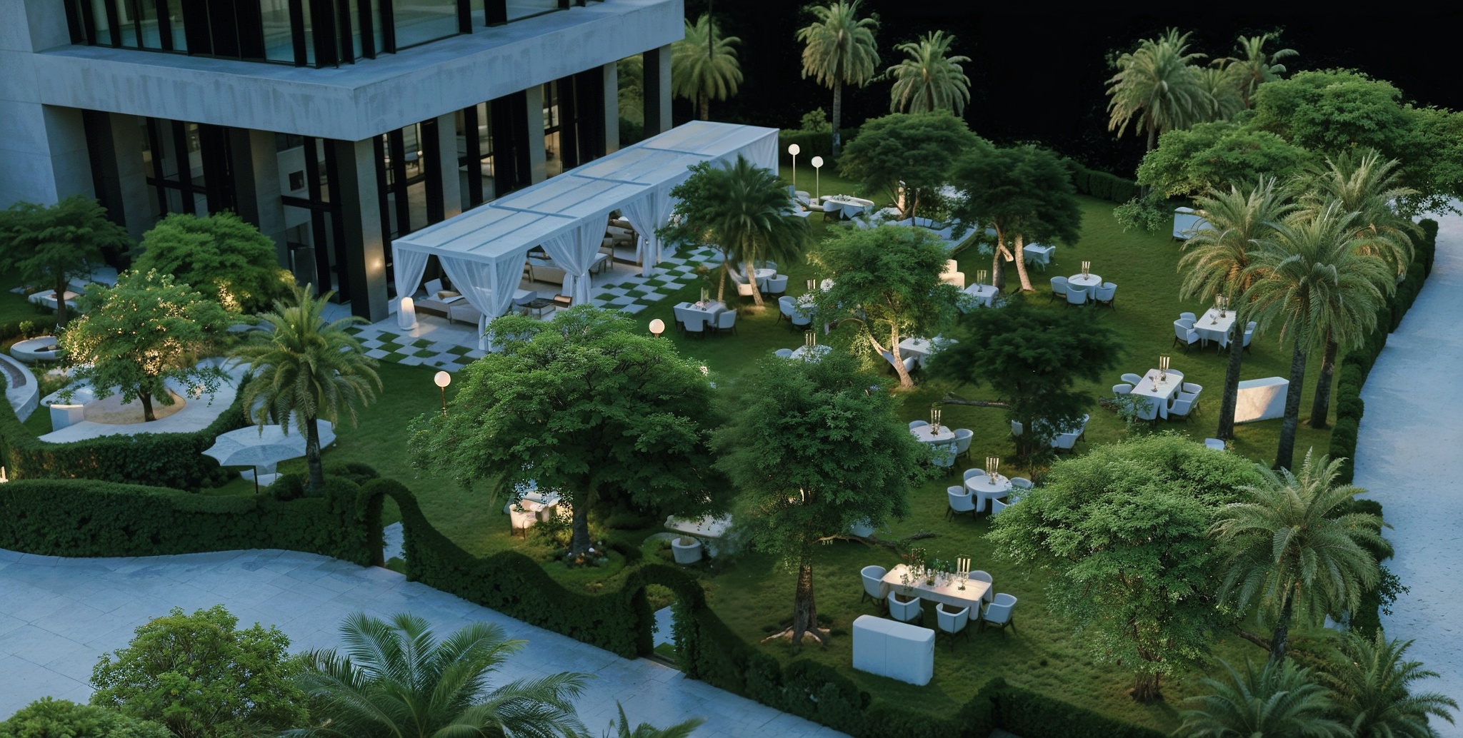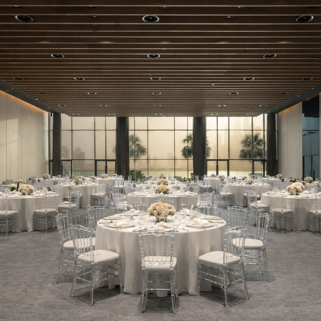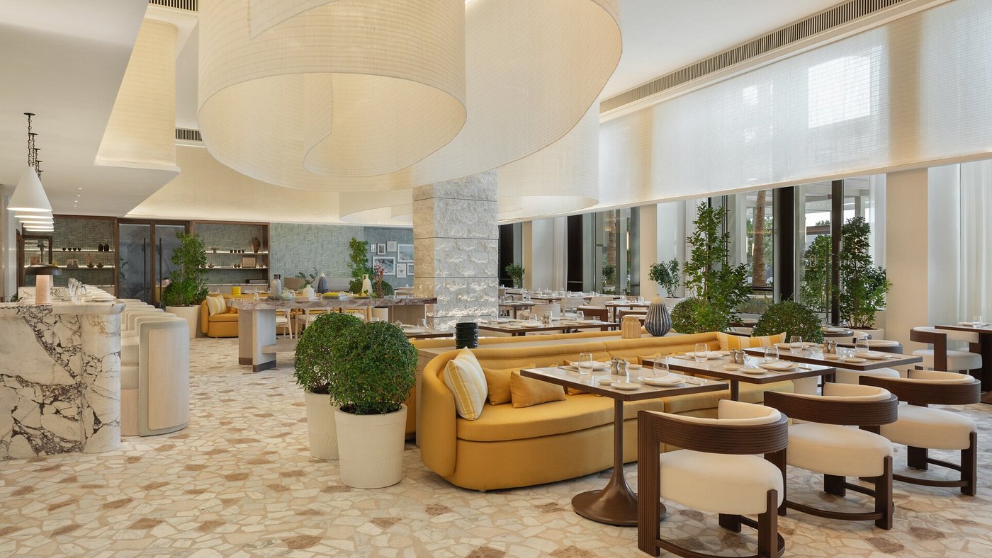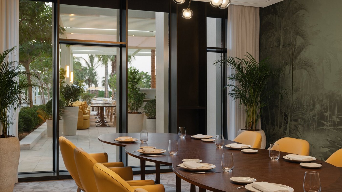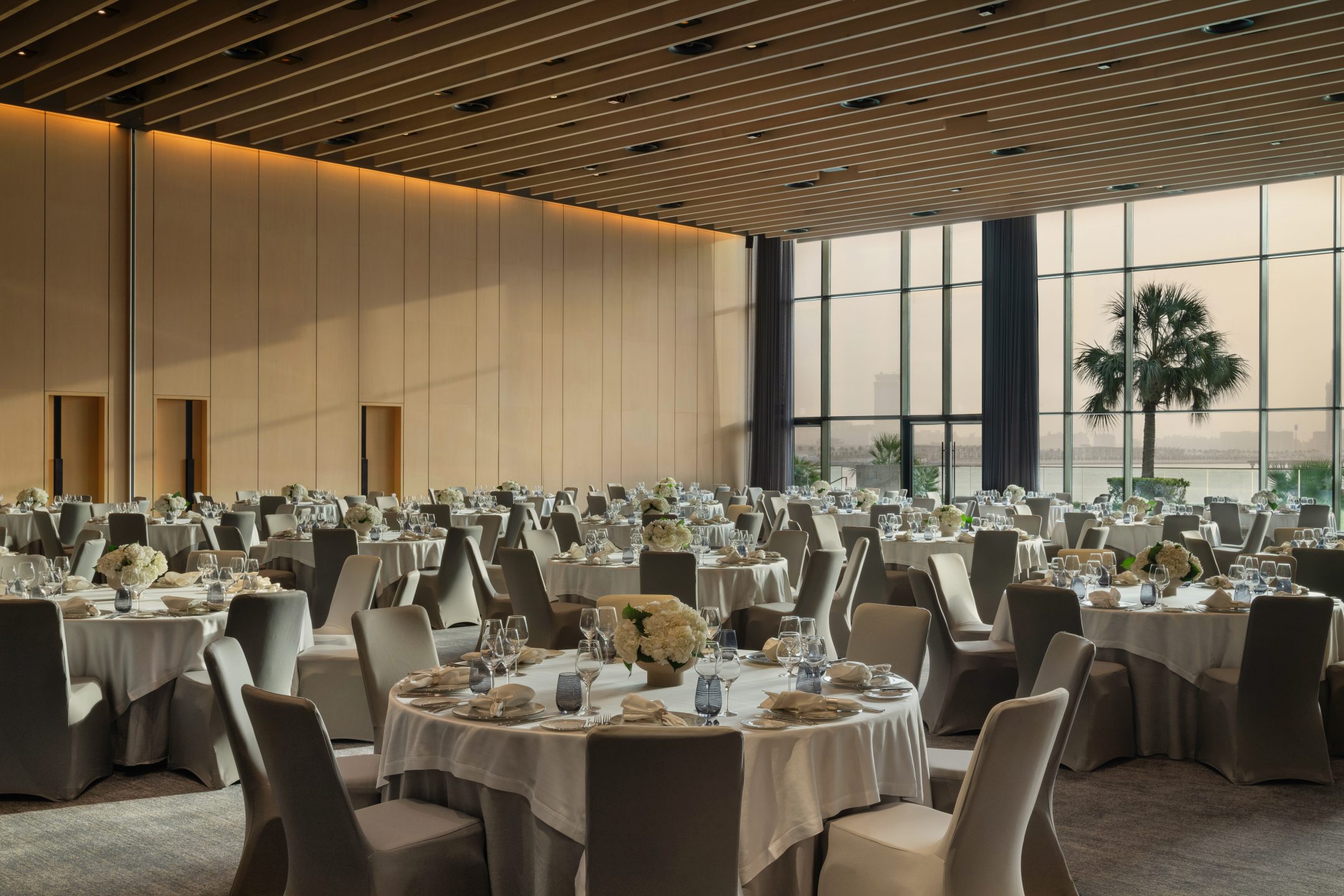 Open-air celebrations are equally captivating. Choose from one of the terraces — by the ocean’s edge, beside the mirror-like pool, or surrounded by lush greenery with panoramic views of Ain Dubai and the bay. The 86 sq.m terrace comfortably hosts up to 60 guests for a cocktail reception. For more intimate occasions, such as a rehearsal dinner, the hotel offers elegant meeting rooms that can be combined to suit your needs.