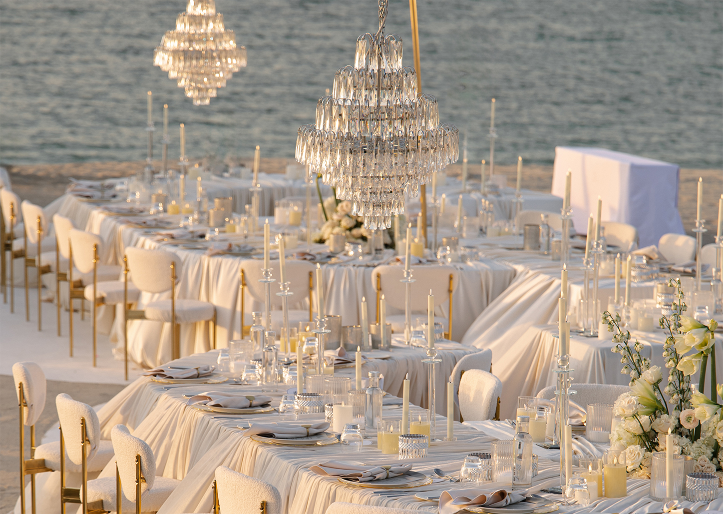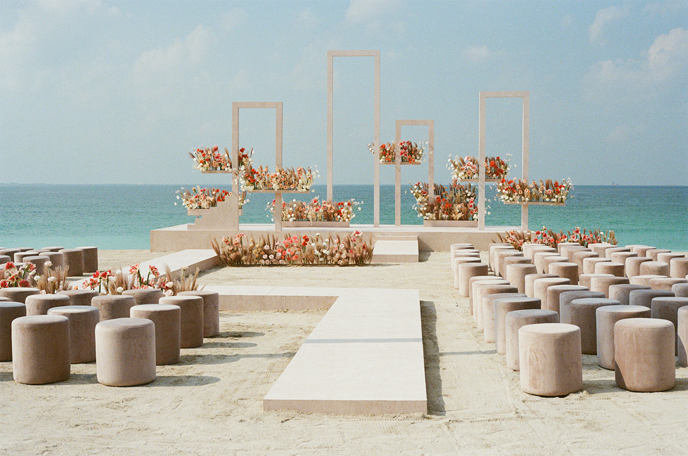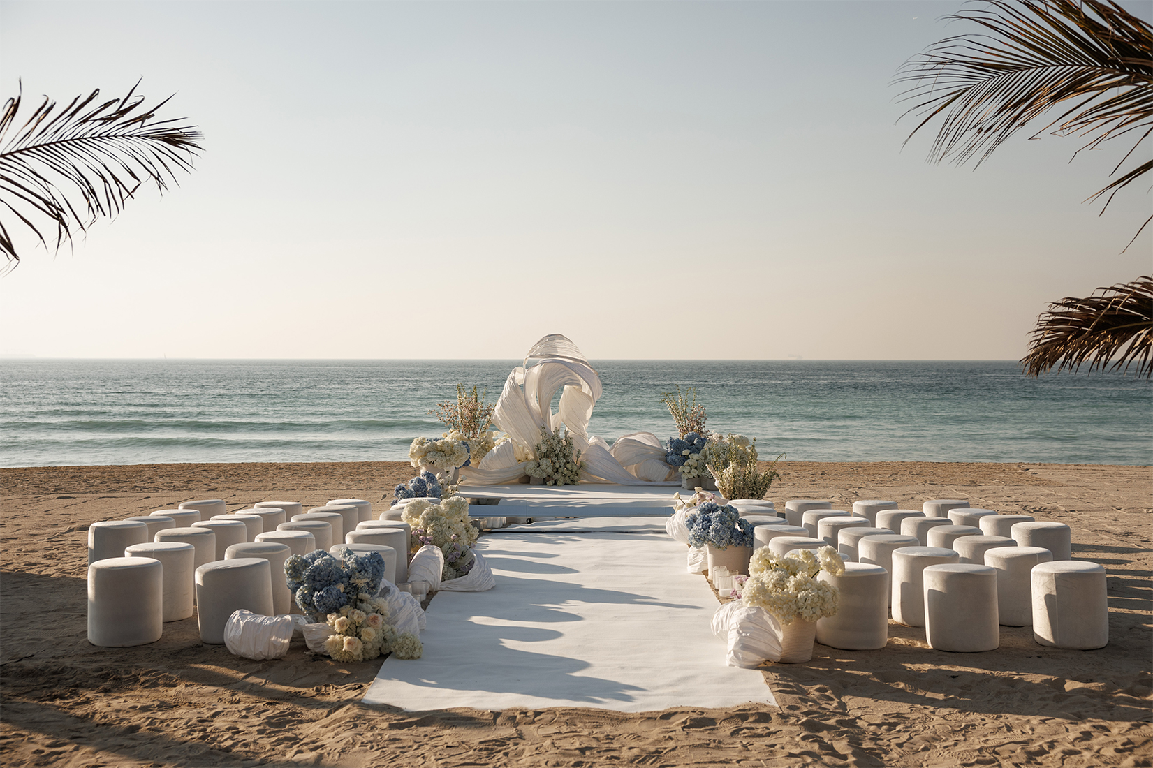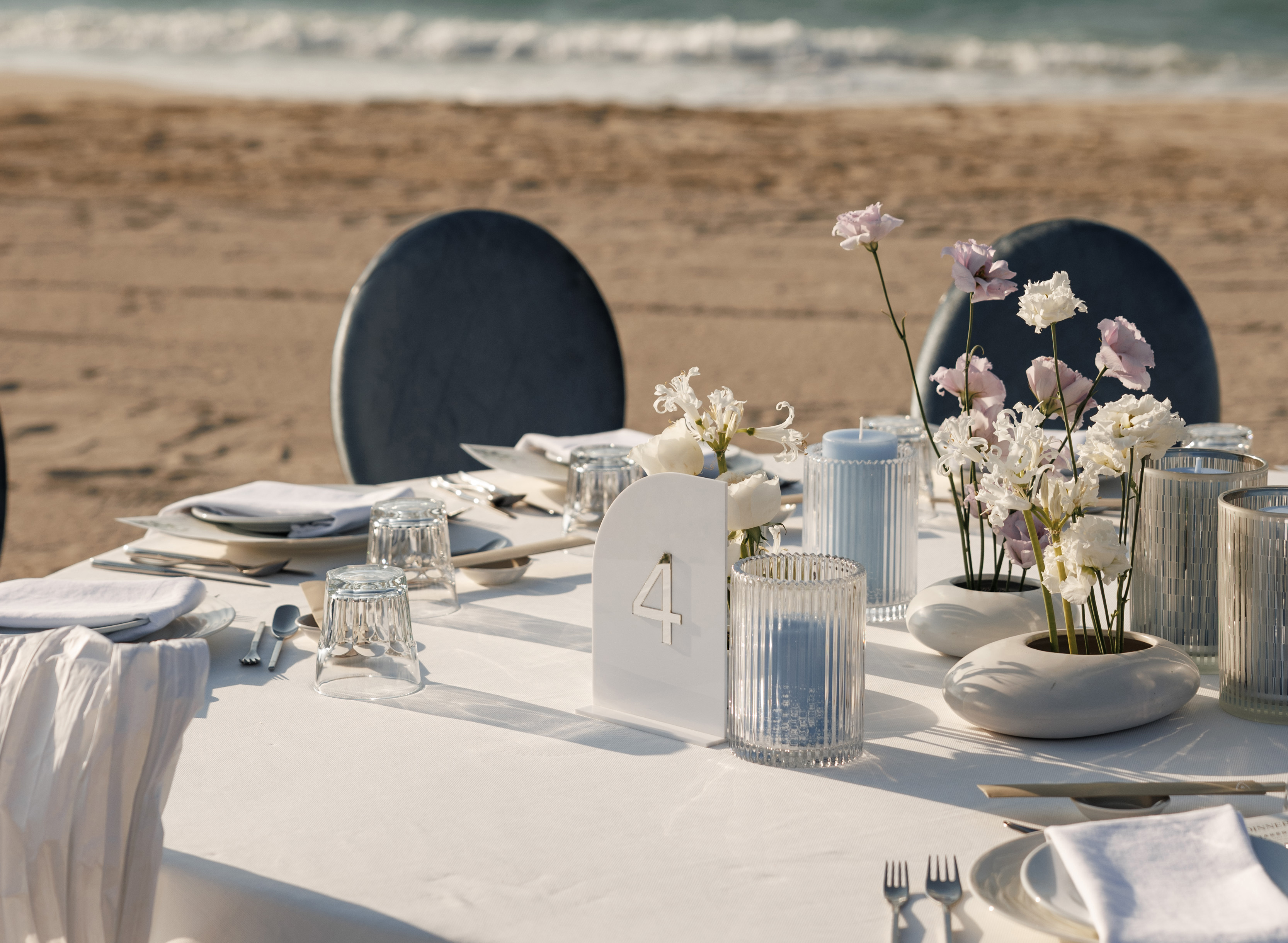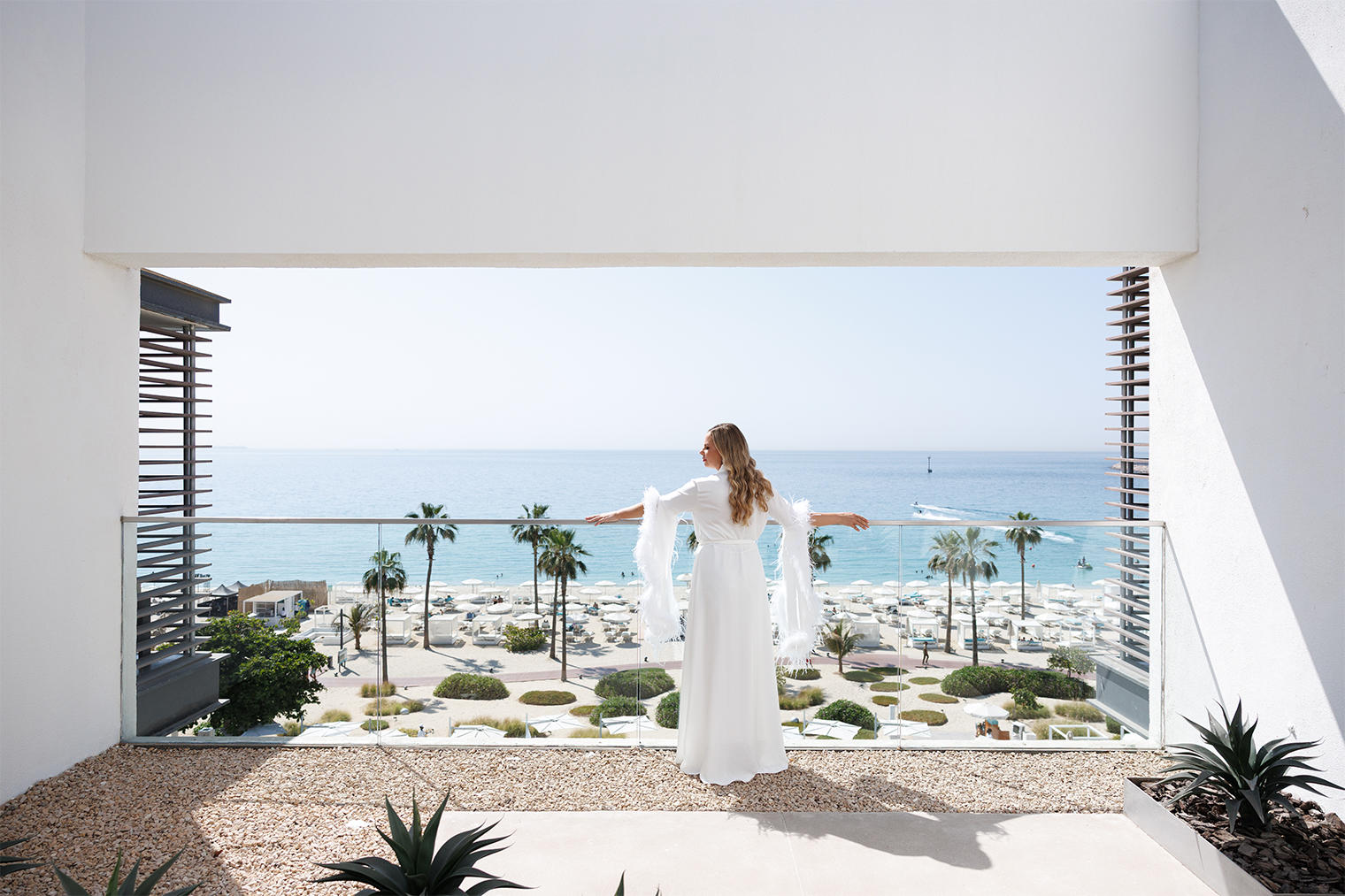 The resort brings the spirit of the most glamorous soirées of Saint-Tropez and Santorini to the Arabian coast. Crisp white pavilions and sun loungers contrast beautifully with the turquoise waters of the pool, forming an effortlessly chic backdrop where your celebration becomes a natural extension of the venue’s distinctive aesthetic.
