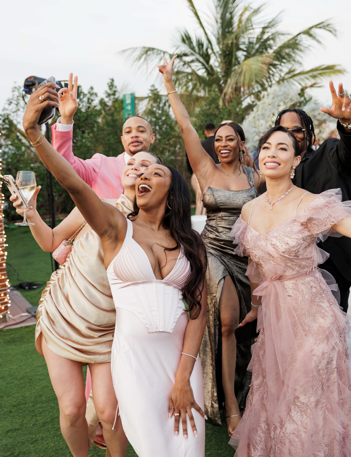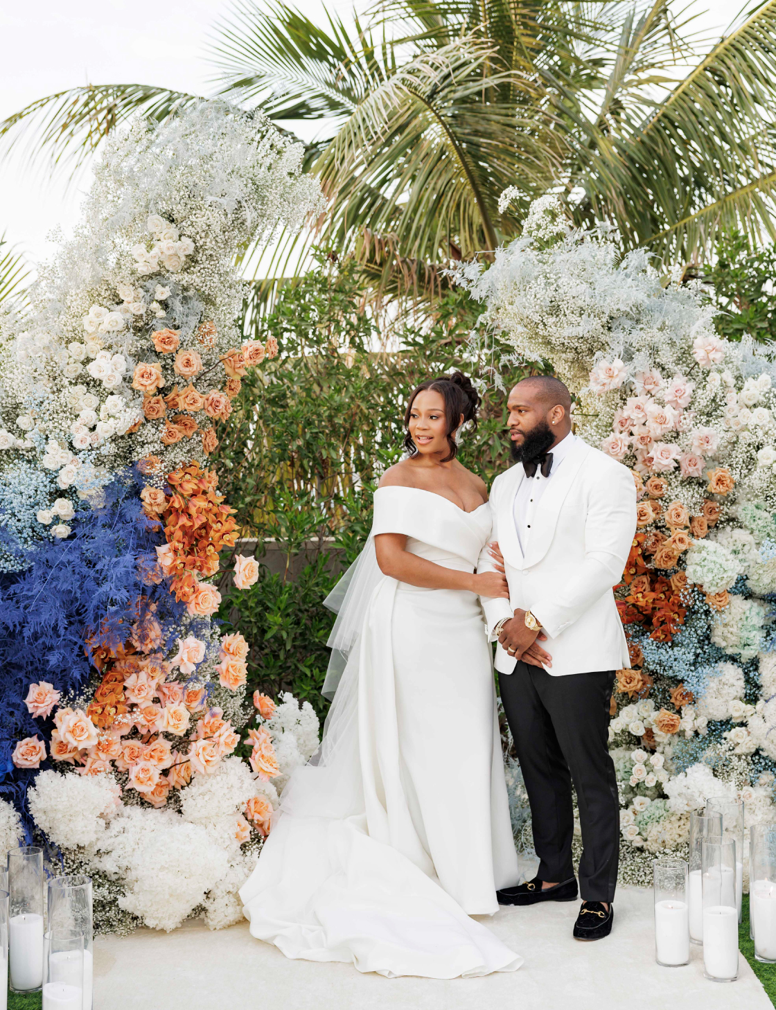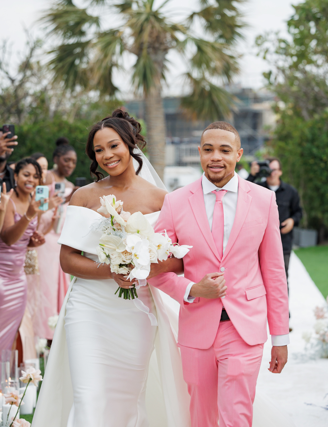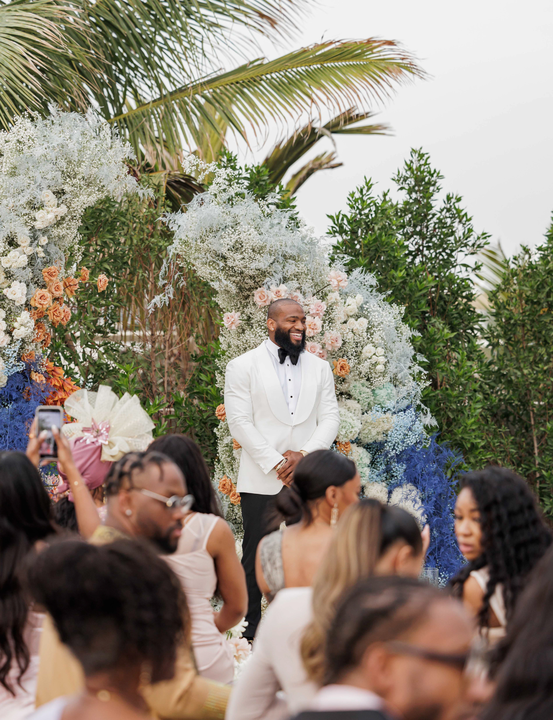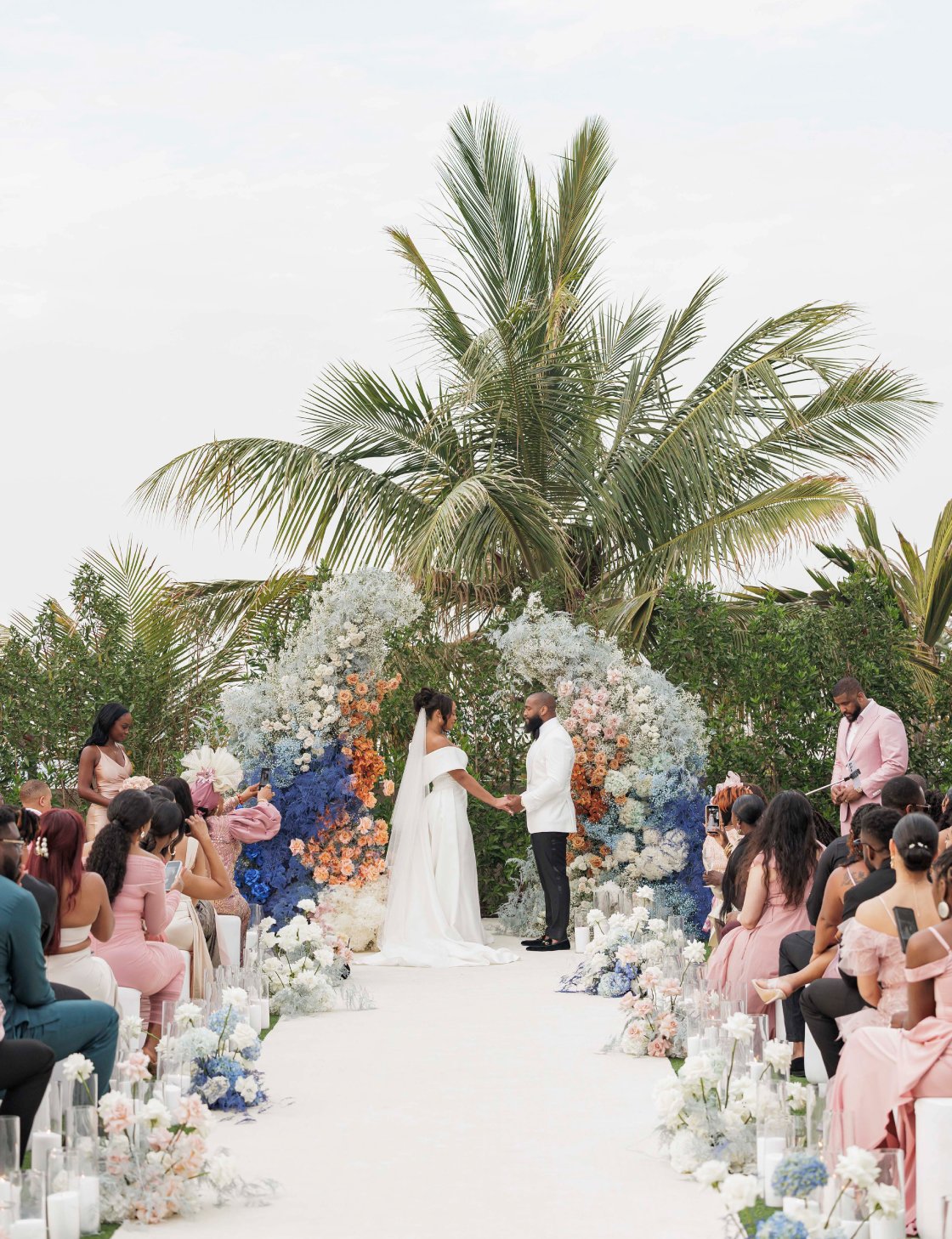 The wedding featured a dress code where the couple hoped guests would opt for light-colored attire to complement the wedding color palette. To simplify things for their guests, the couple prepared references featuring similar looks.