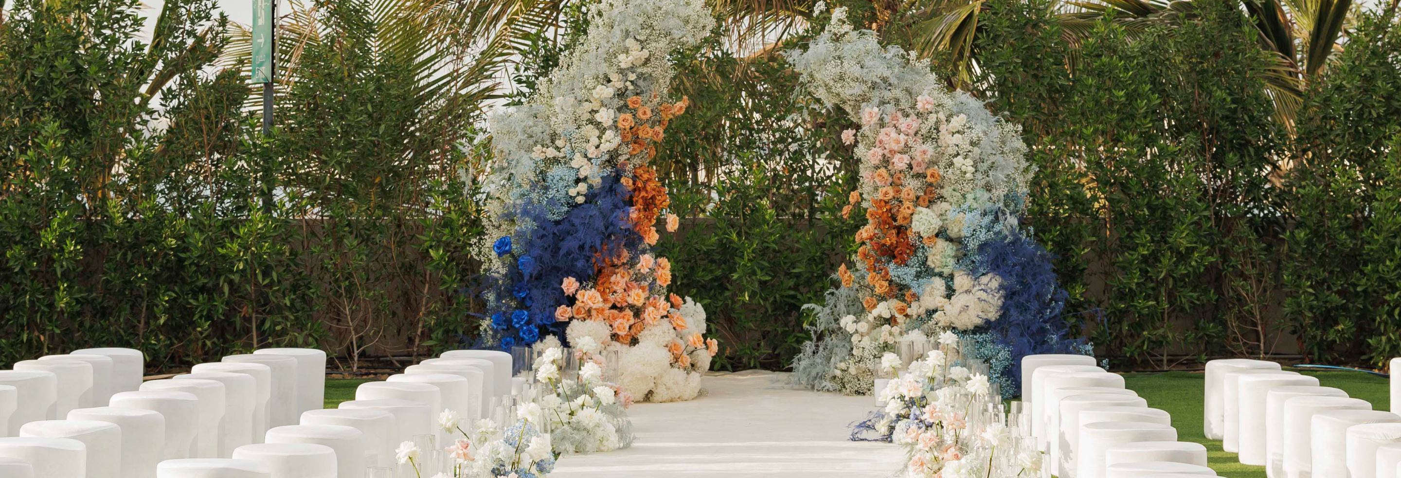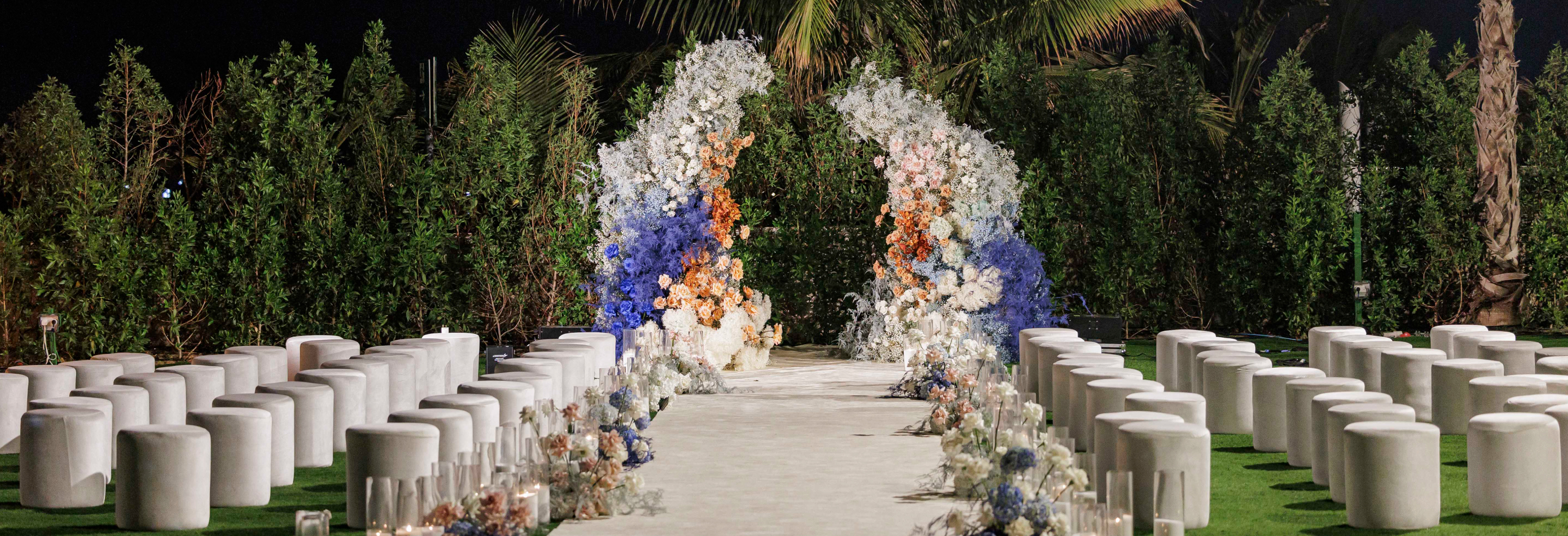 Great care was taken in designing the invitations: a dedicated website was crafted to showcase the couple’s passion for travel. Guests received a distinctive “ticket” to the Dubai wedding, along with heartfelt wishes and greetings from Onyi and Sandra.
